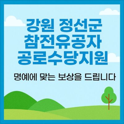 강원 정선군 참전유공자 공로수당지원에 대한 모든 것을 알려드릴게요! 💖 2025년 최신 정부 공식 자료를 바탕으로 신청 절차, 대상자 확인, 지급 기준, 그리고 문의 안내까지 꼼꼼하게 정리했어요. 국가를 위해 헌신하신 분들을 위한 소중한 혜택, 놓치지 말고 지금 바로 확인해보세요. 😊