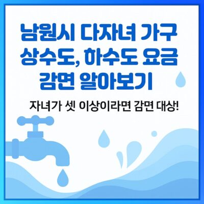 안녕하세요! 오늘은 남원시에 거주하는 다자녀 가구를 위한 아주 특별한 소식을 가져왔어요. 바로 남원시 다자녀 가구 상수도 및 하수도 요금 감면 제도랍니다. 이 제도는 출산과 육아에 따르는 경제적 부담을 조금이나마 덜어드리기 위해 마련된 고마운 지원이에요. 아이 키우다 보면 공과금 하나하나가 신경 쓰이기 마련인데, 상수도 요금을 감면받을 수 있다니 정말 좋은 소식이죠? 2025년 최신 공식 정보를 바탕으로 누가, 얼마나, 어떻게 혜택을 받을 수 있는지 꼼꼼하게 알려드릴게요!