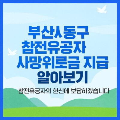 부산시 동구 참전유공자 사망위로금 지급 알아보기 정보가 필요하신가요? 국가를 위해 헌신하신 분들을 위한 복지 혜택, 지원 사업, 그리고 유족을 위한 가족 지원 및 등록 절차까지 모두 알려드릴게요. 2025년 최신 공식 정보를 바탕으로 꼭 필요한 내용을 정리했으니, 이 글 하나로 궁금증을 해결해 보세요! ❤️😊